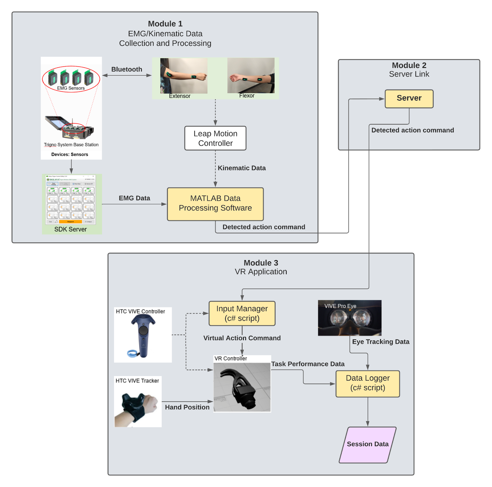 | EMG-Based Human-Machine Interaction | VR-based training for EMG prosthetic hands | Unity, C#, C++, C, Python, Matlab, VR Interaction Design, Delsys |
